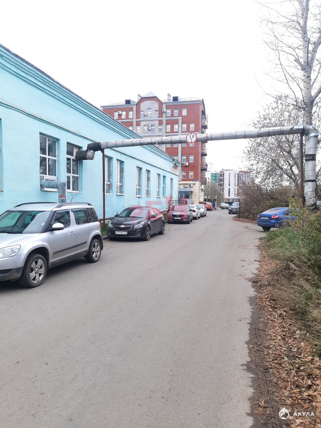 Парковка у здания и вдоль забора