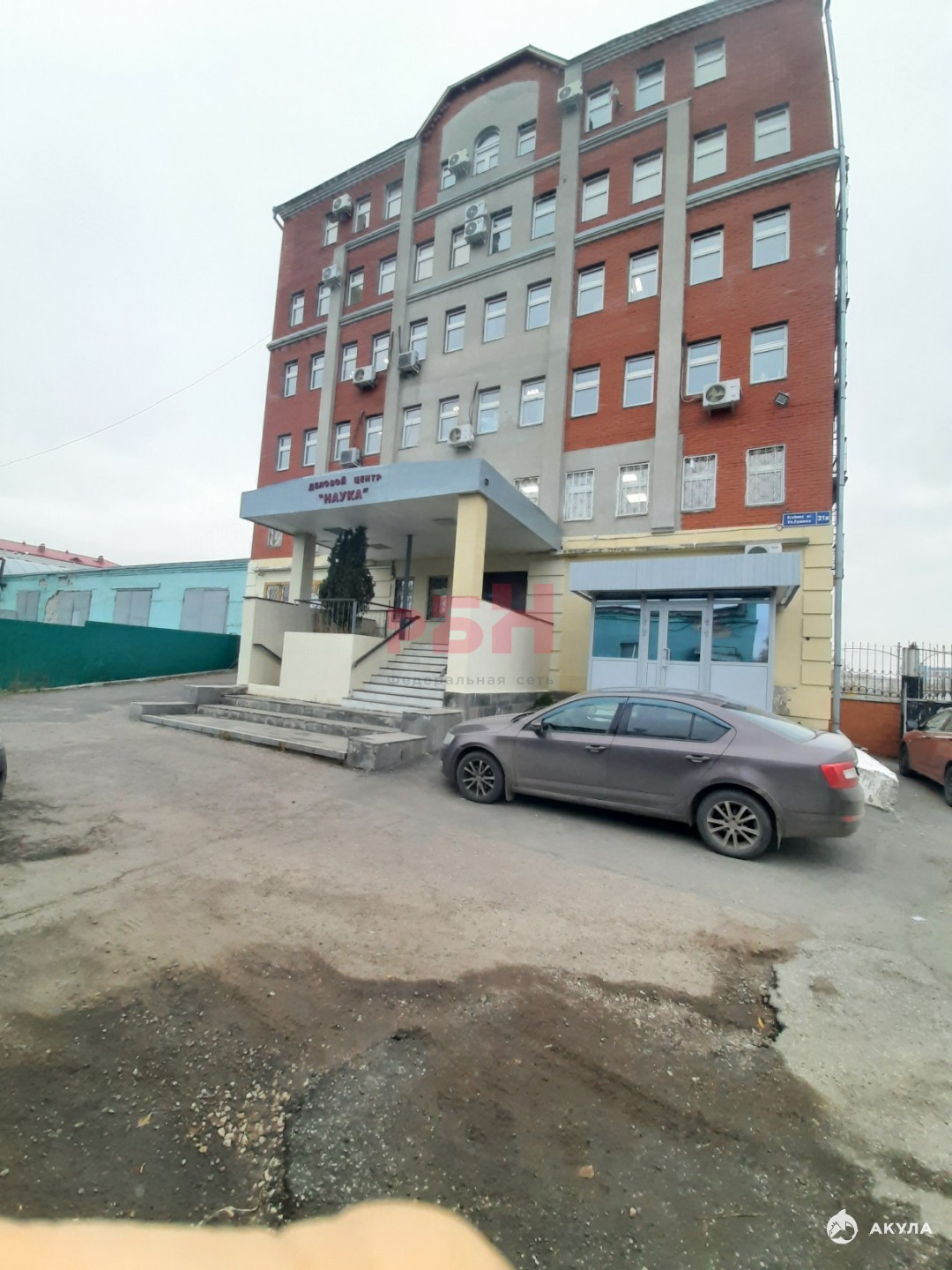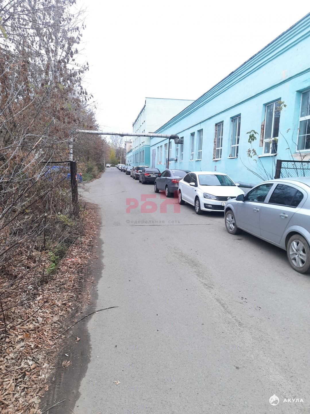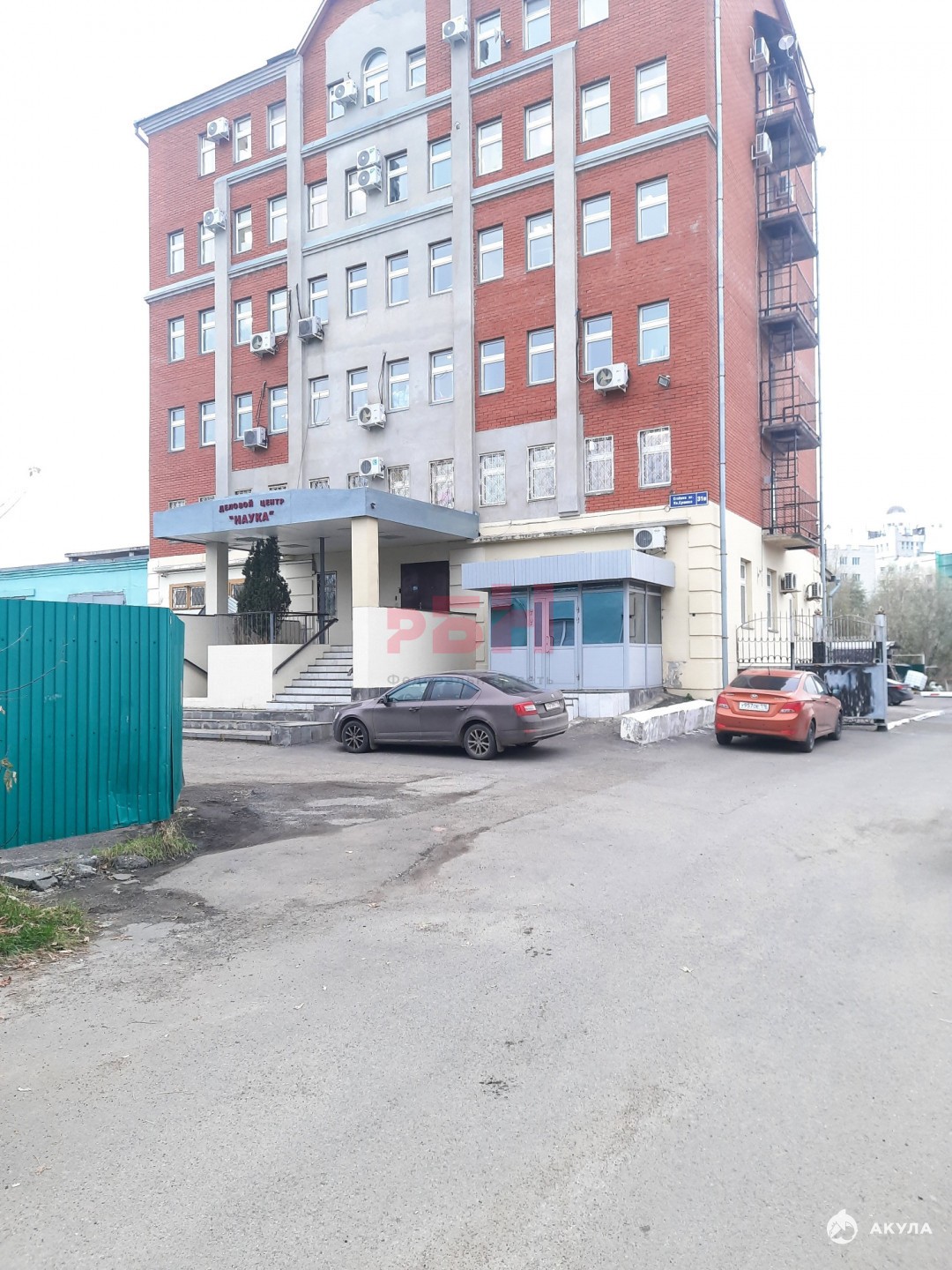 Общая парковка у здания и вдоль забора.