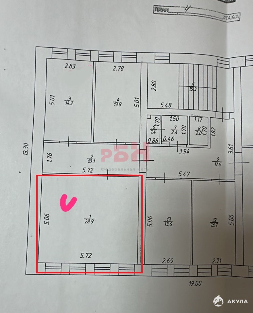 кабинет 13.9 м2 на 4 этаже