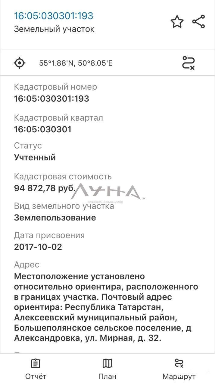 Кадастровый номер участка 16:05:030301:193.