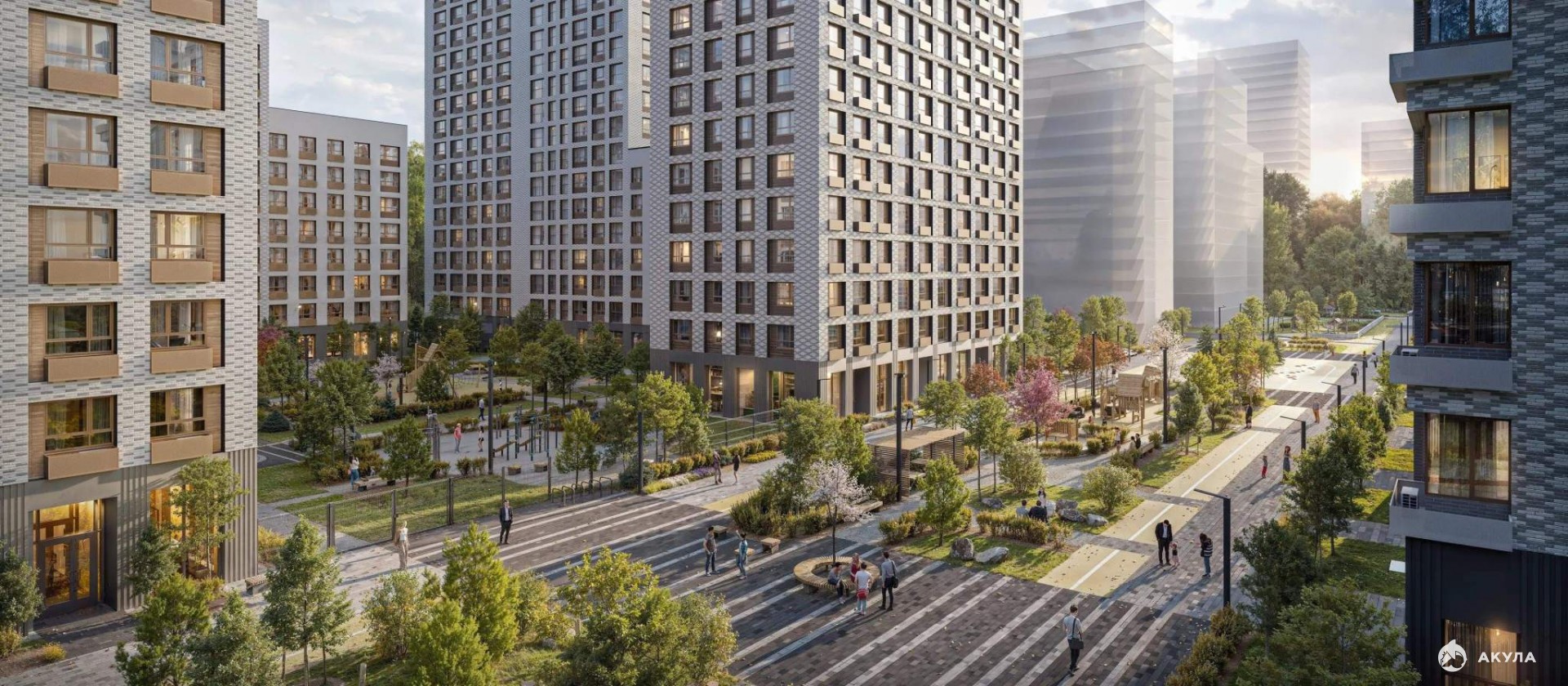 Переменная высота домов от 7 до 26 этажей создаёт ощущение простора, а солнечному свету позволяет беспрепятственно проникать во дворы и квартиры. С верхних этажей откроется панорамный вид на реку Казанку, «Ак Барс Арену» и центр семьи «Казан».