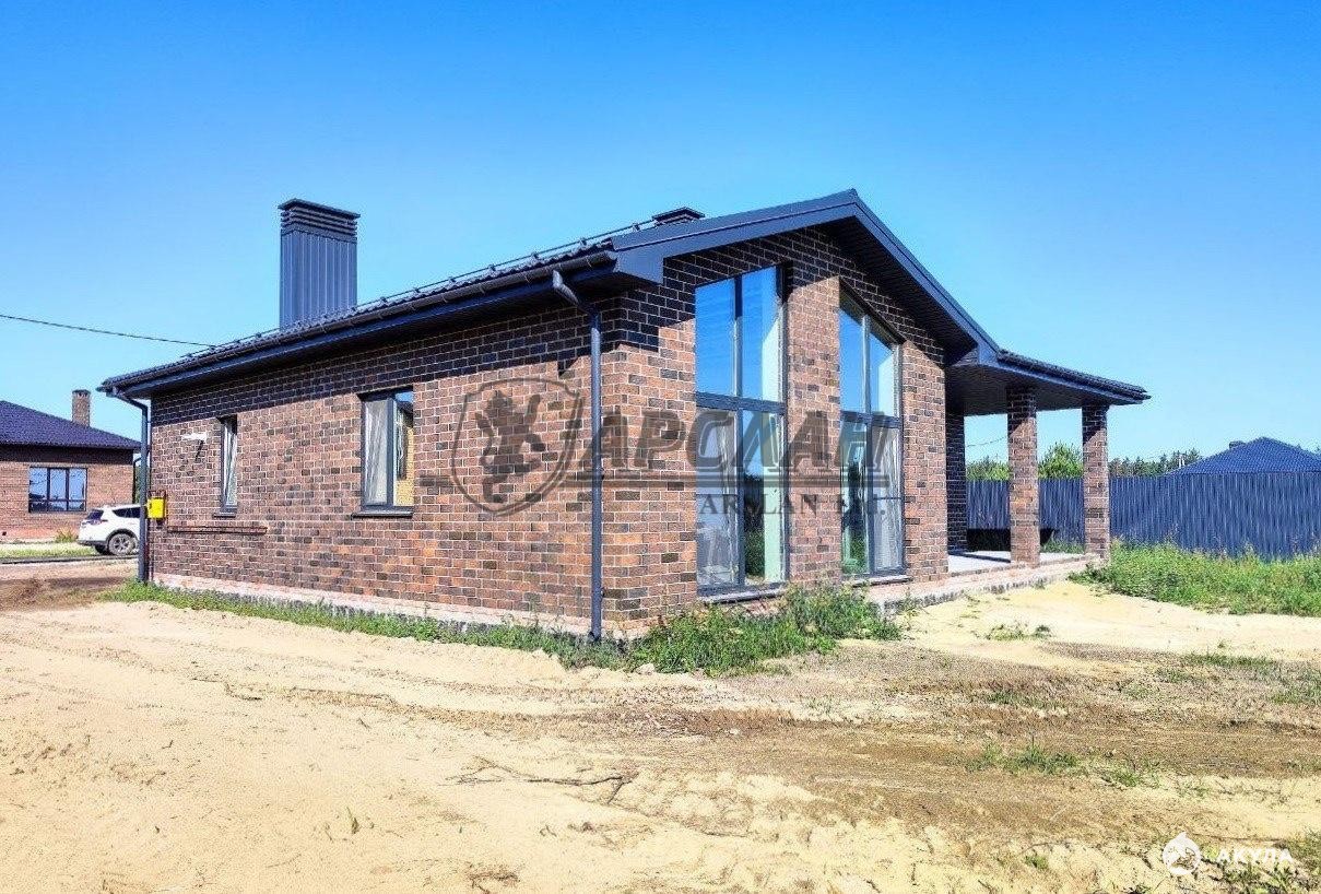 Кирпичный жилой дом с общей площадью 140 м², гостиная со вторым светом, с террасой, котельной, гардеробной и мастер- спальней, участок ИЖС 10 сот.