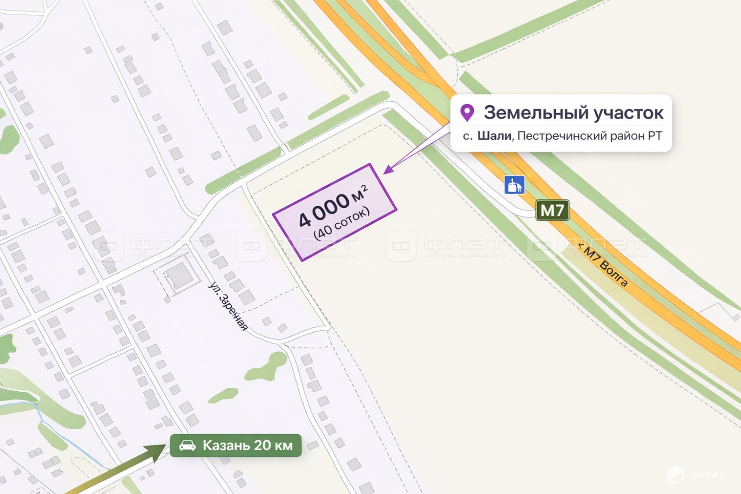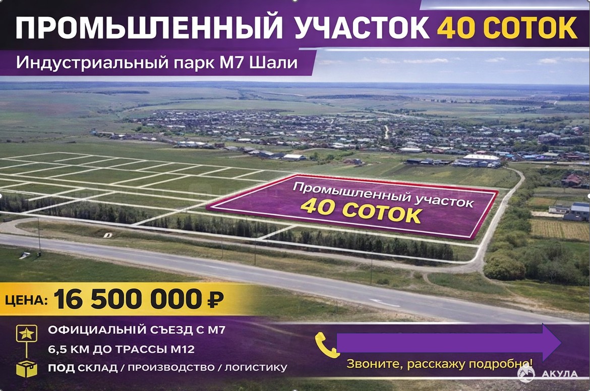 Объект №118230 40 СОТОК-Индустриальный парк М7 ШалиПродаётся промышленный земельный участок площадью 0, 4 га (40 соток / 4000 м²) в благоустроенном индустриальном парке М7 Шали, Пестречинский район Республики Татарстан.