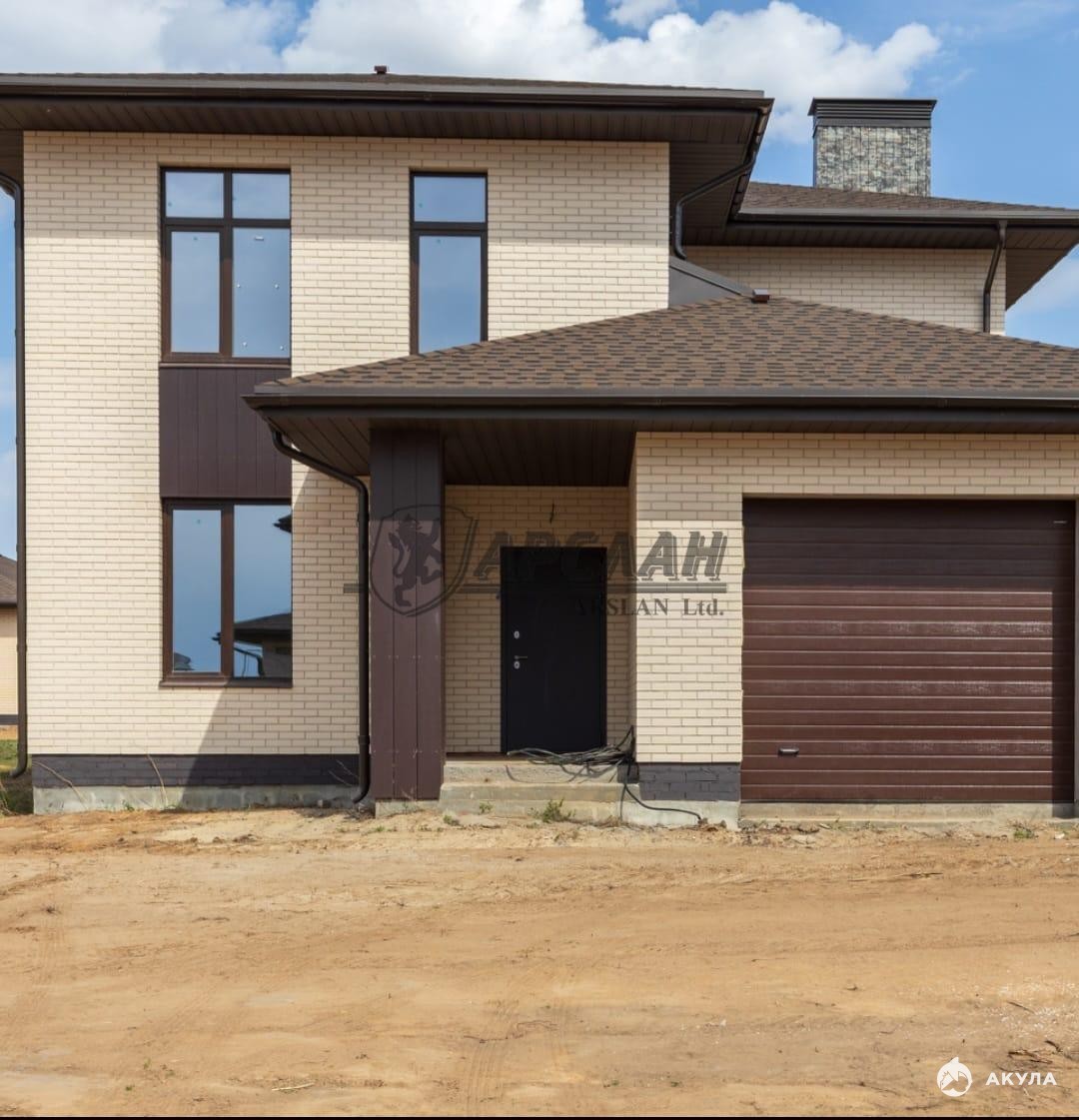 На первом этаже расположены кухня-гостиная с выходом на террасу, где можно наслаждаться утренним кофе или вечерними закатами, рабочий кабинет для тех, кто работает удалённо, санузел, подсобная комната и утеплённый гараж с выходом из дома — больше не нужно беспокоиться о парковке и сохранности автомобиля. На втором этаже — три просторные спальные комнаты, где каждый член семьи найдёт свой уголок для отдыха, санузел, гардеробная и выход на балкон, с которого открывается вид на участок.