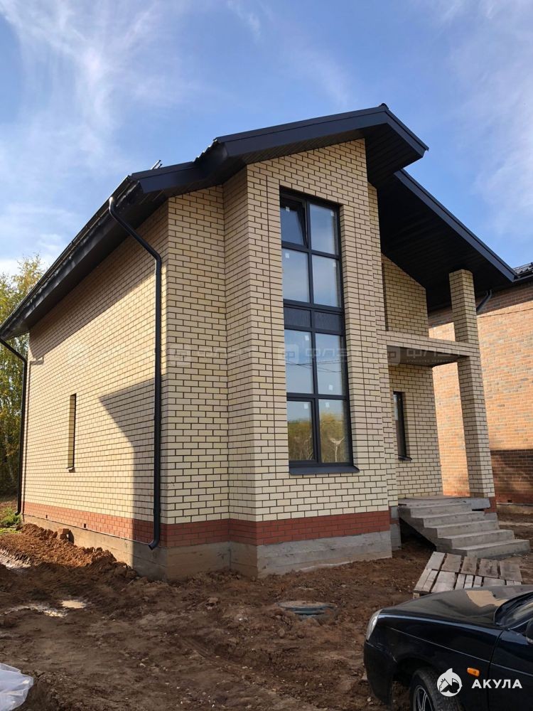 Дом построен из облицовочного кирпича. Заливной фундамент , перекрытия первого и второго этажа жб плитами, утеплитель- экологически чистая и пожаробезопасная мин.вата, крыша - металлочерепица.