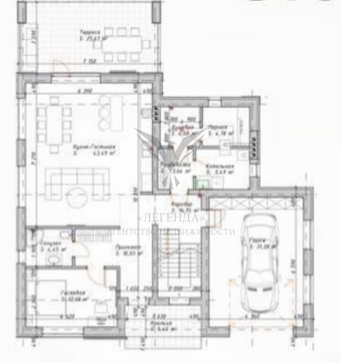 Общая отапливаемая площадь дома 283м2 с террасами 330кв.м,