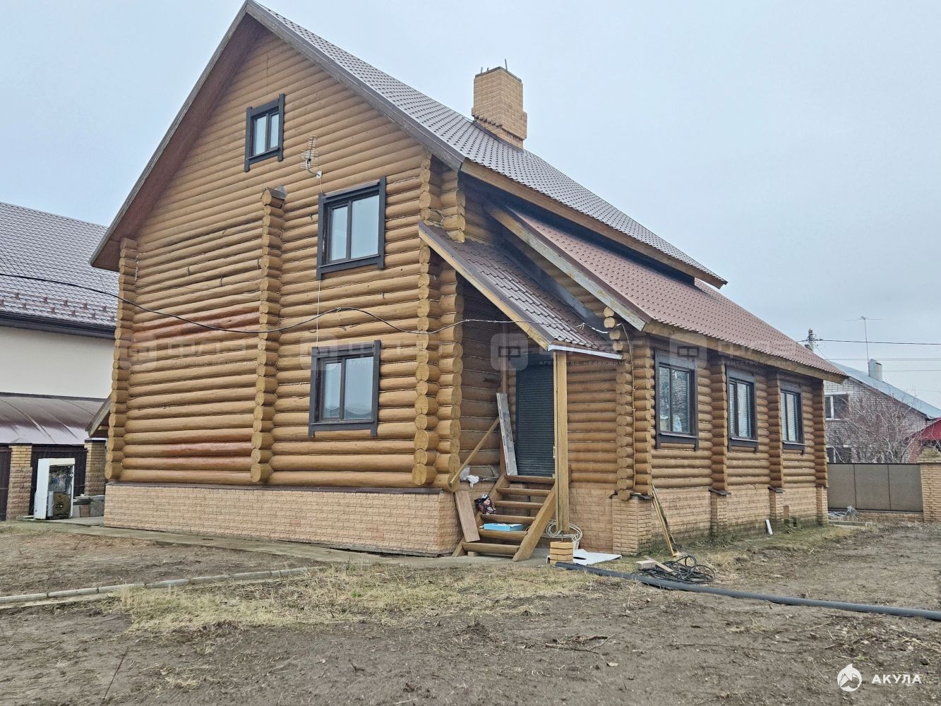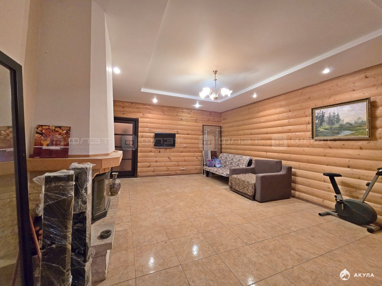Все коммуникации (газовый котел, водоснабжение, система очистки воды) убраны в подвал дома. На данный момент отопление отключено. Включим к сделке.