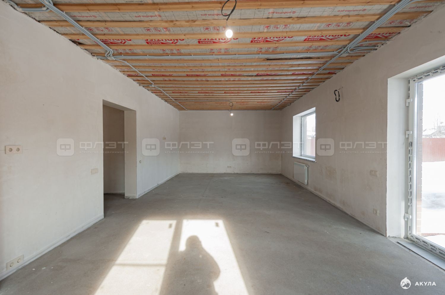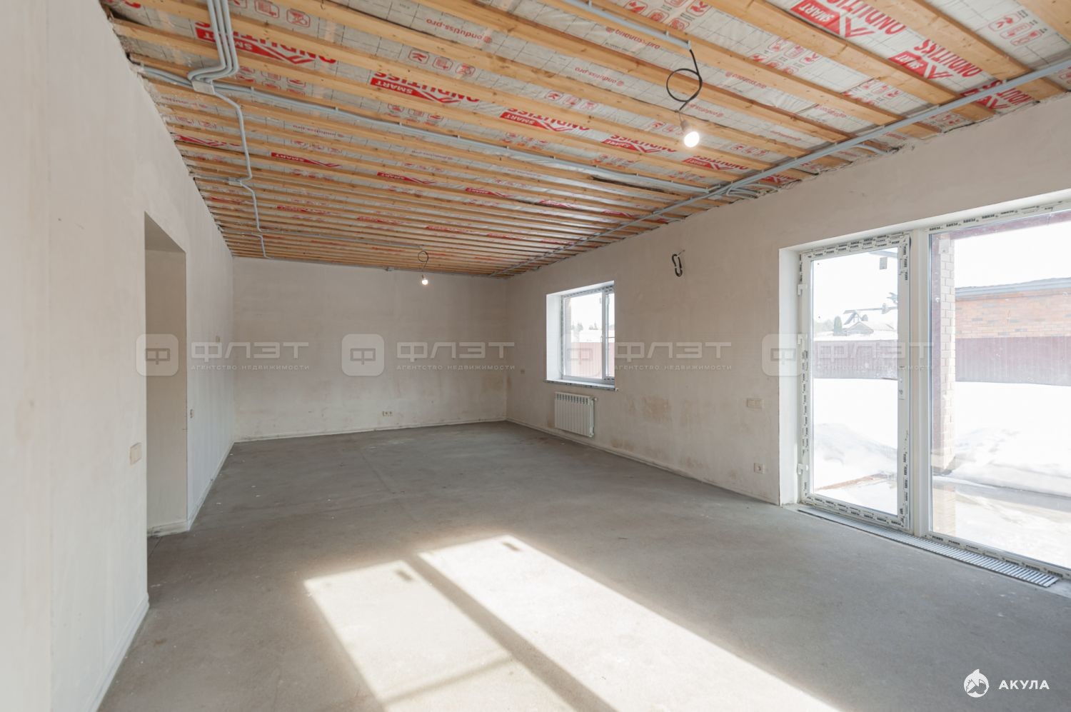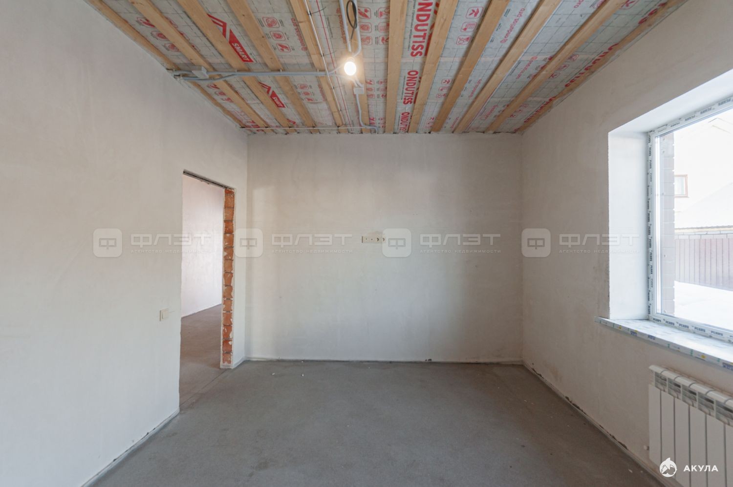 Дом полностью отштукатурен и сделана стяжка пола.