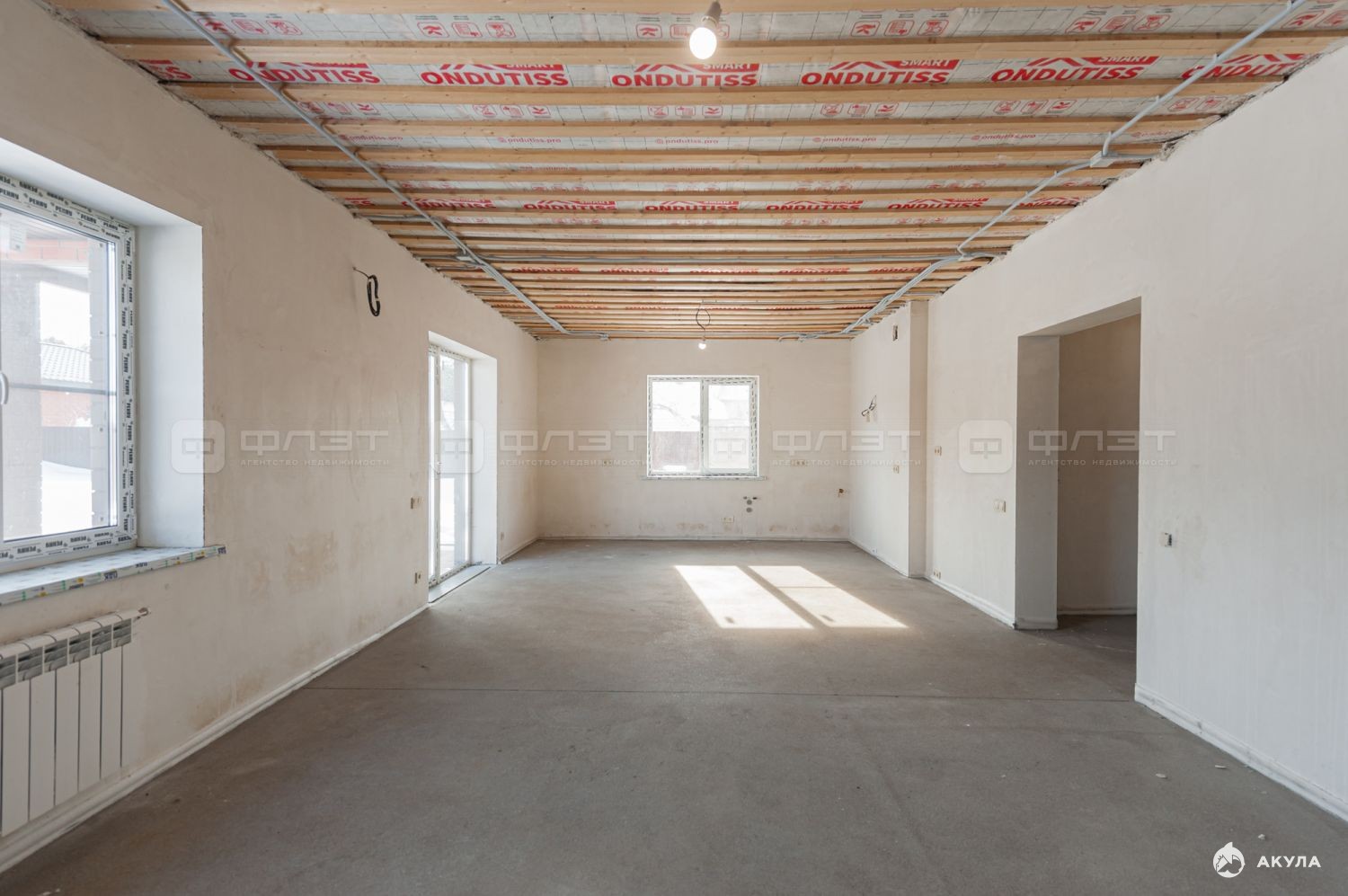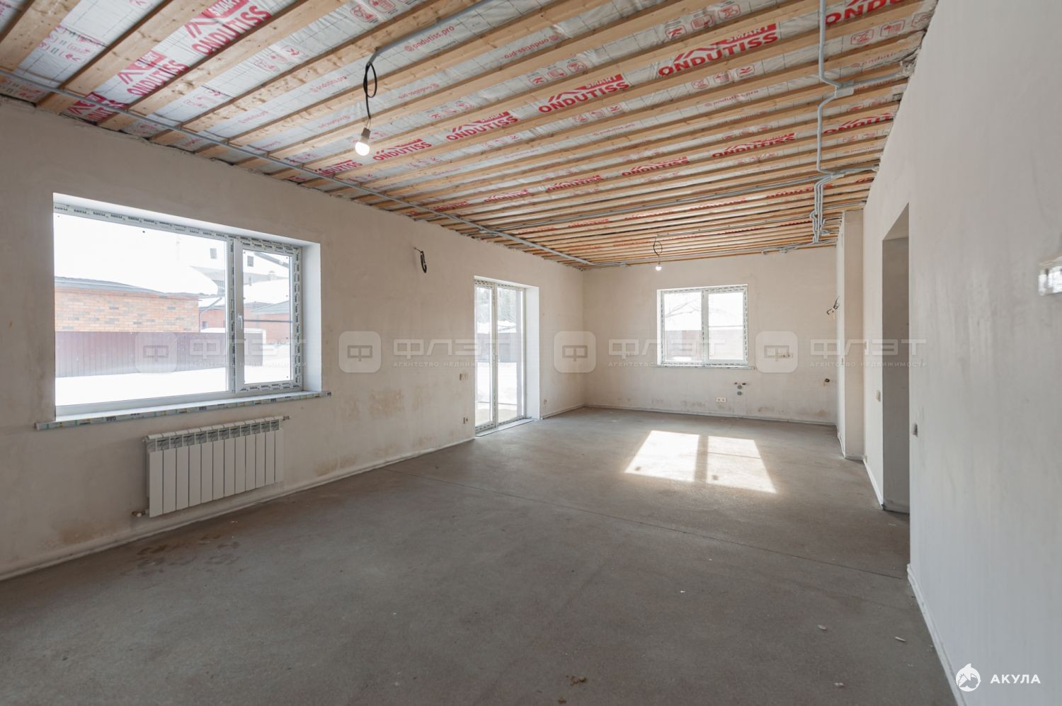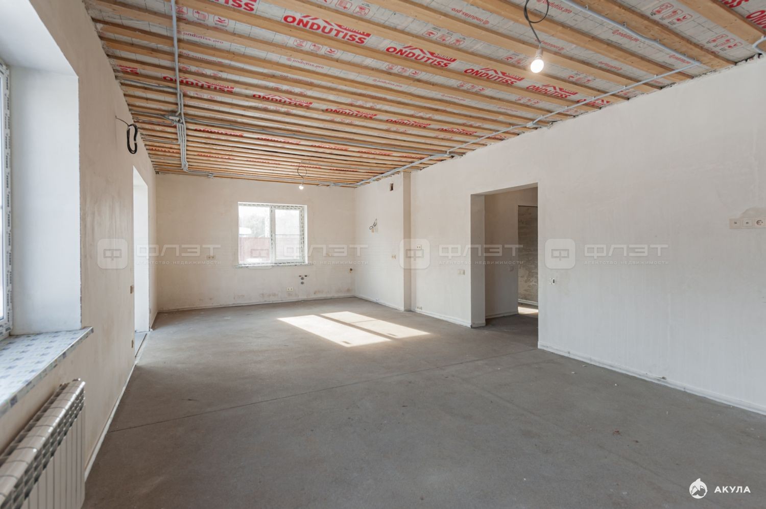 Дом полностью отштукатурен и сделана стяжка пола.
