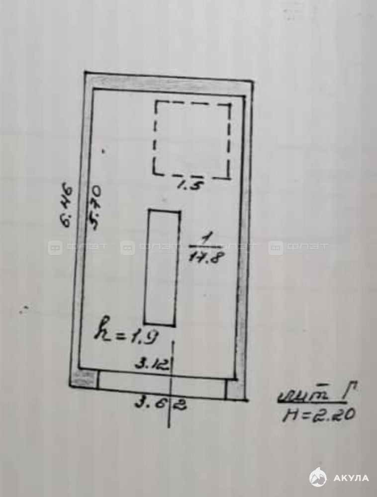 Площадь 17, 8 м² с удобной внутренней шириной 3, 12 м и длиной 5, 7 м.