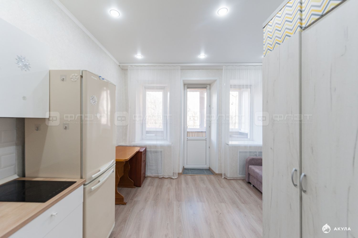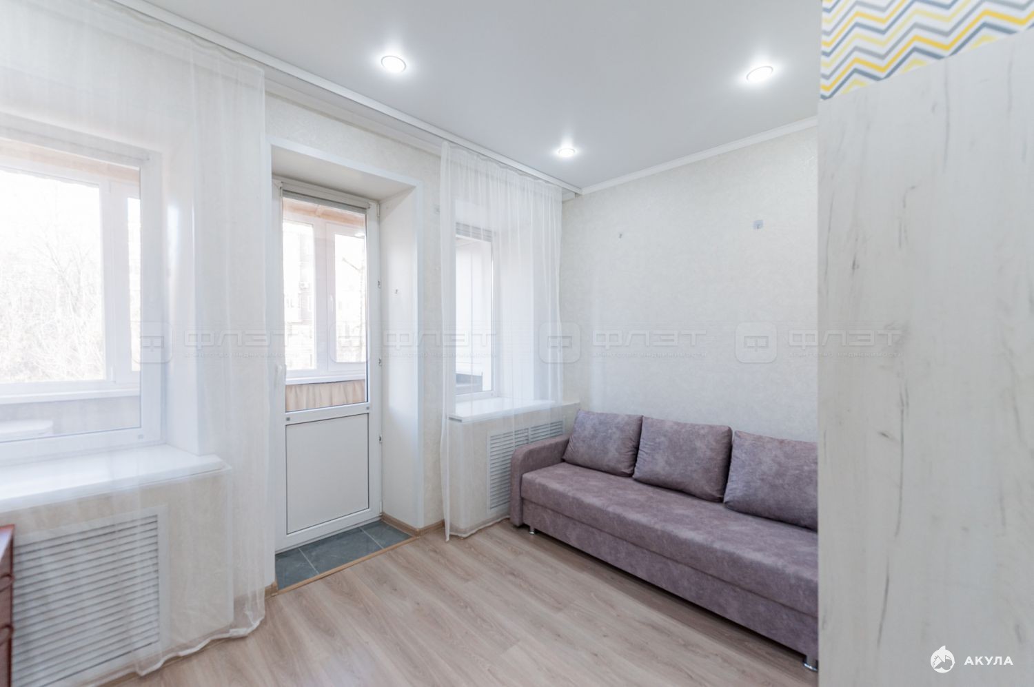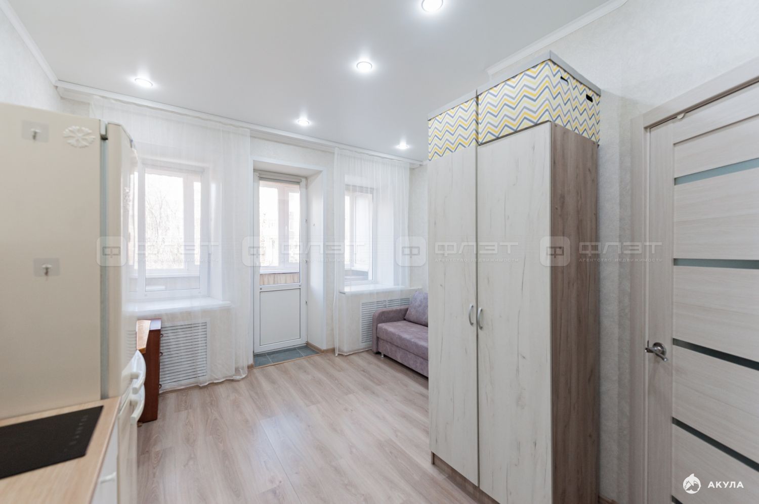 два окна, свой застекленный балкон;