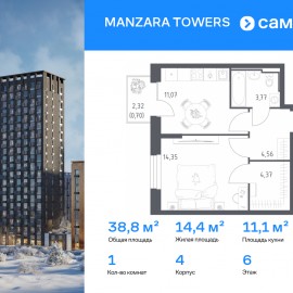 Строим кварталы для жизни с заботой о будущем. Предлагается 1-комнатная квартира комфорт-класса 38, 82 кв.м в корпусе 4 на 11 этаже, в MANZARA TOWERS Квартира с предчистовой отделкой. Доступность дополнительных опций уточняйте у застройщика. Приобрести квартиру возможно по...