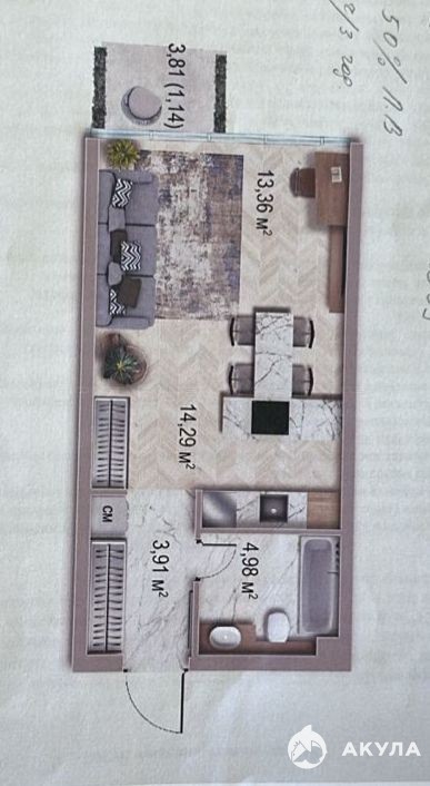 - 14.3 м²