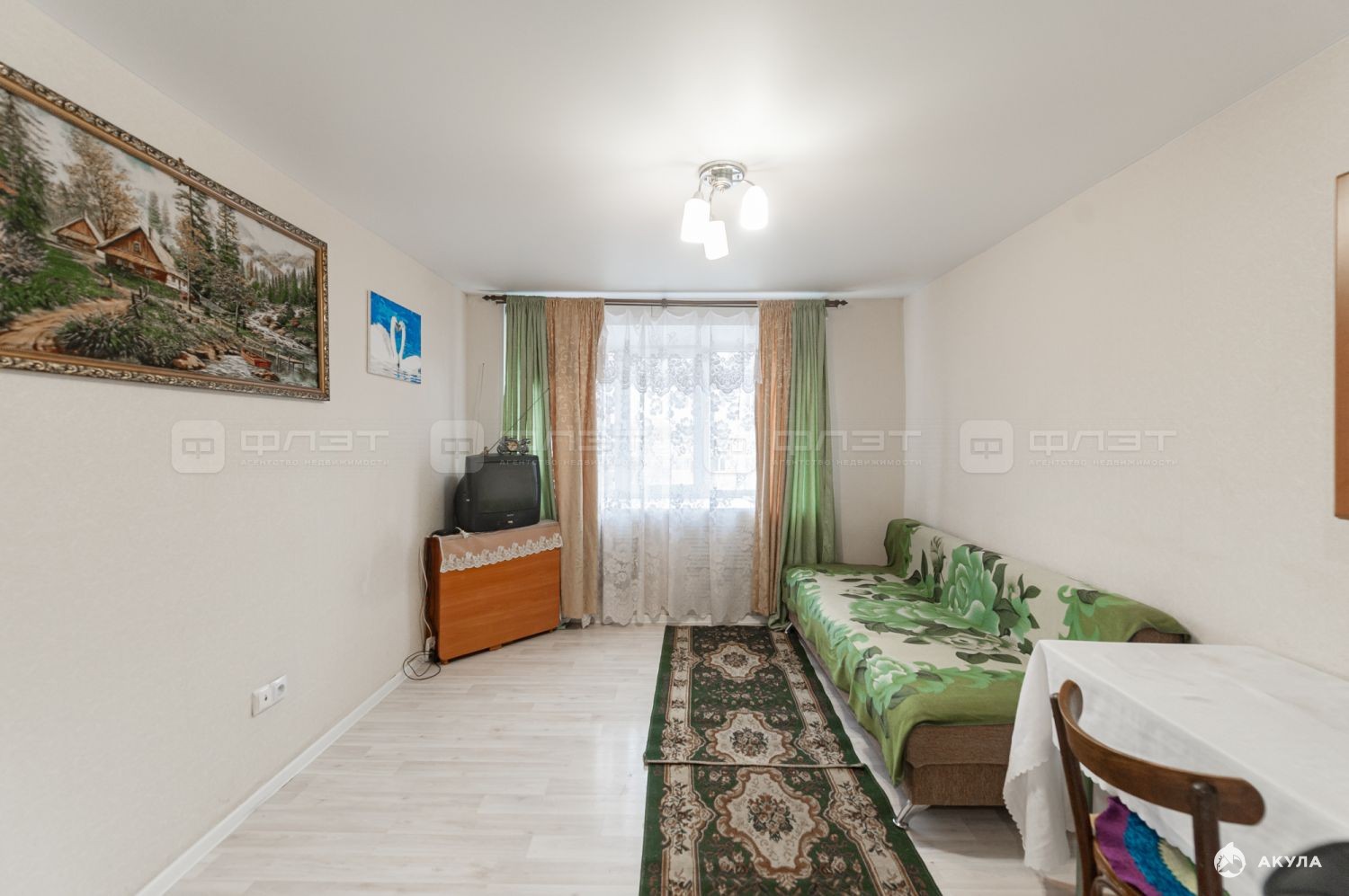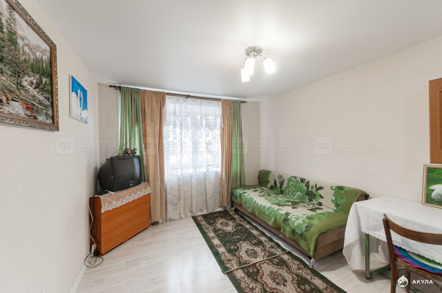 На полах ламинат, установлены натяжные потолки, пластиковые окна. Остается вся мебель и частично техника.