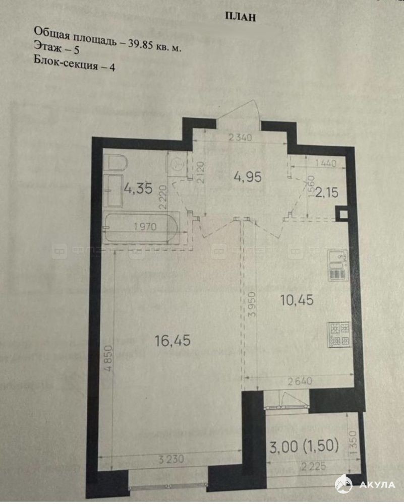 Общая площадь 39, 92 кв.м.