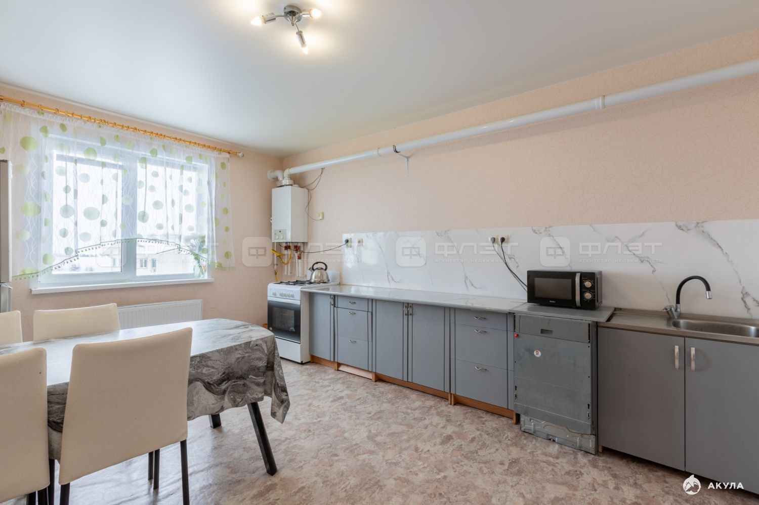 Низкие коммунальные платежи, индивидуальное газовое отопление квартиры и подогрев воды.Встроен Настенный газовый котел.