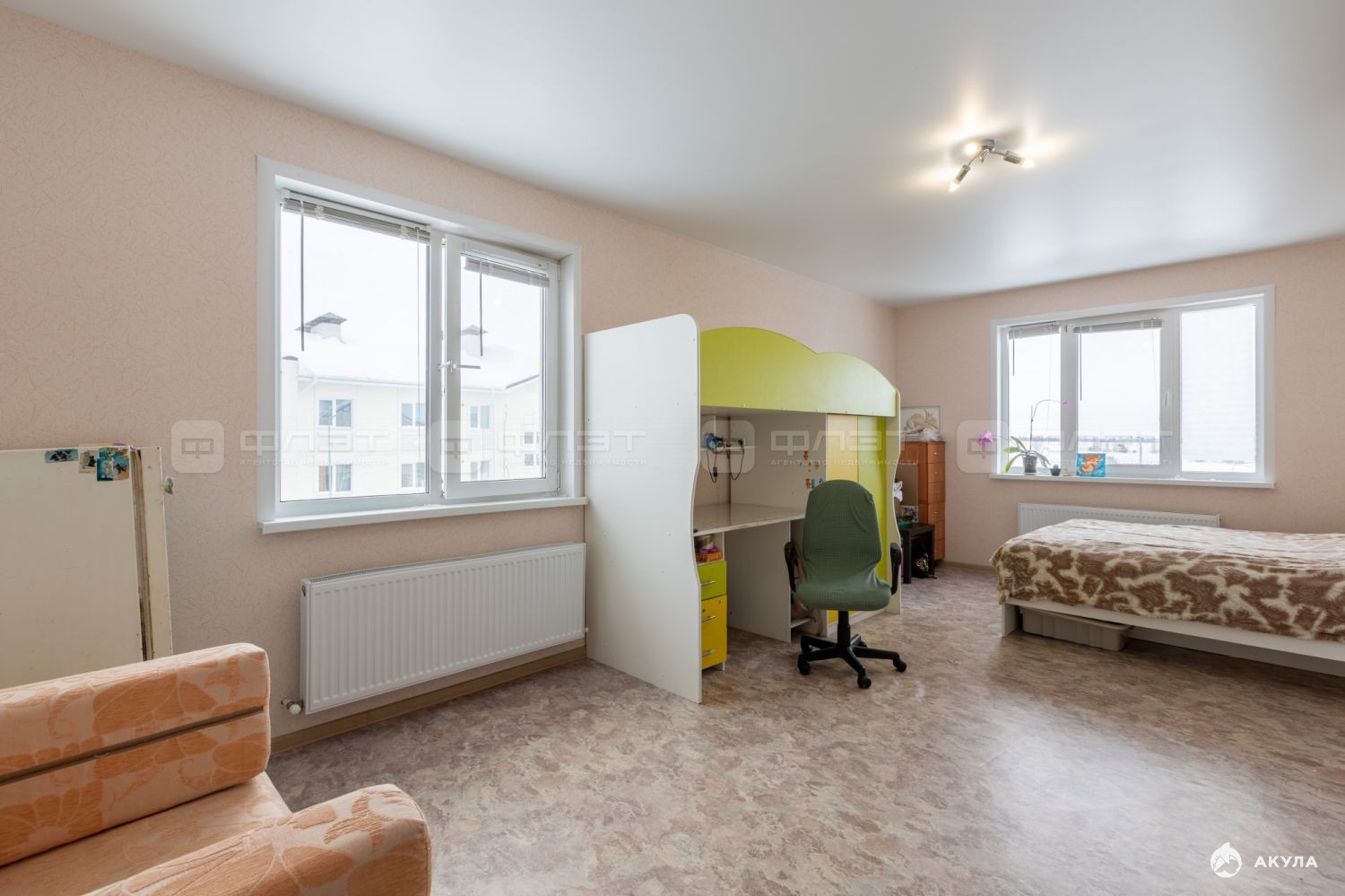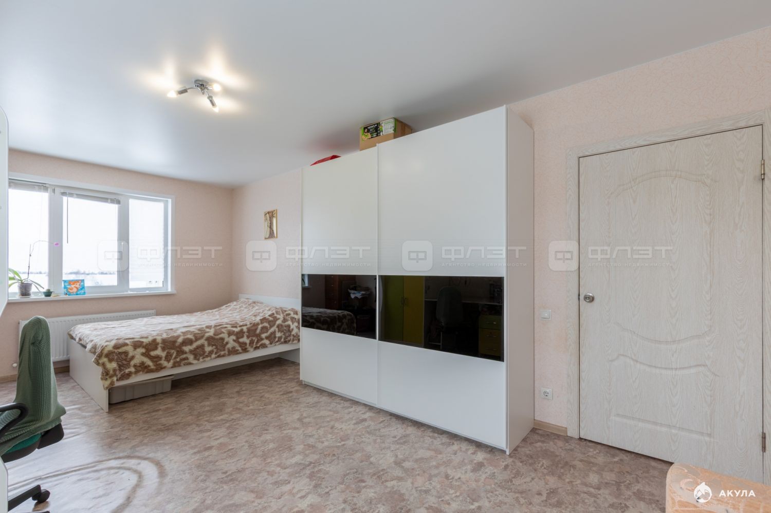 Зал с двумя окнами, можно сделать три комнаты. Широкая прихожая