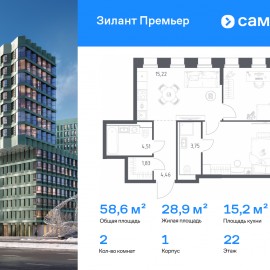 Строим кварталы для жизни с заботой о будущем. Предлагается 2-комнатная квартира комфорт-класса 58, 63 кв.м в корпусе 1 на 22 этаже, в ЖК «Зилант Премьер» Квартира с предчистовой отделкой. Доступность дополнительных опций уточняйте у застройщика. Приобрести квартиру возможно...