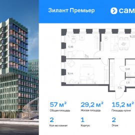 Строим кварталы для жизни с заботой о будущем. Предлагается 2-комнатная квартира комфорт-класса 57 кв.м в корпусе 1 на 2 этаже, в ЖК «Зилант Премьер» Квартира с предчистовой отделкой. Доступность дополнительных опций уточняйте у застройщика. Приобрести квартиру возможно по...
