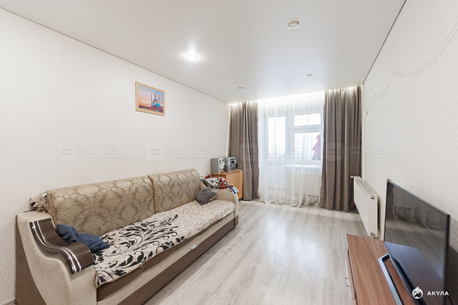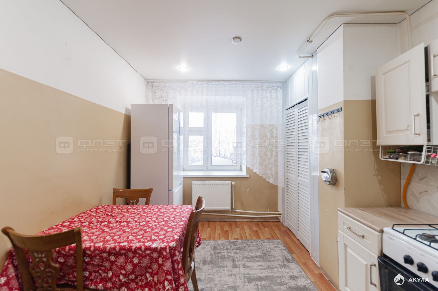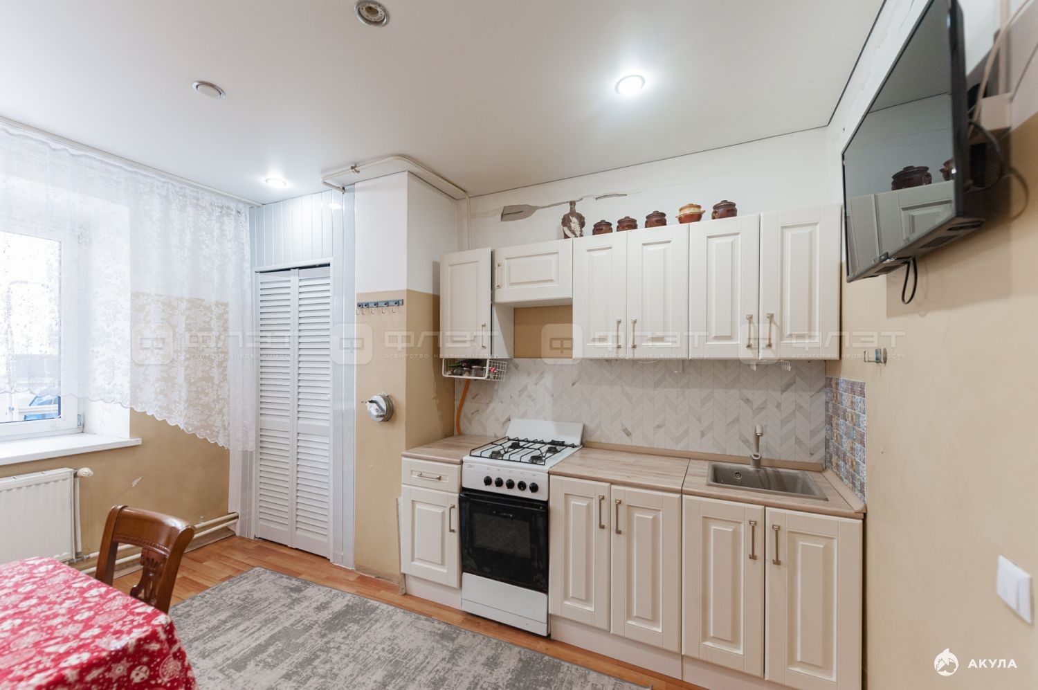 В квартире есть просторные кухня, гостиная и спальная комнаты, а также раздельный санузел.