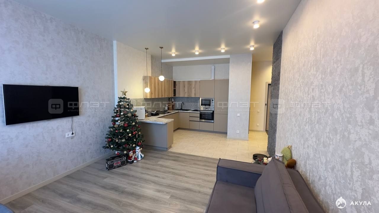 Просторная и светлая квартира с панорамными окнами и потрясающим видом на реку Казанку. Планировка максимально функциональна: уютная кухня-гостиная для отдыха и встреч друзей, а также большая спальня с продуманным местом для хранения.