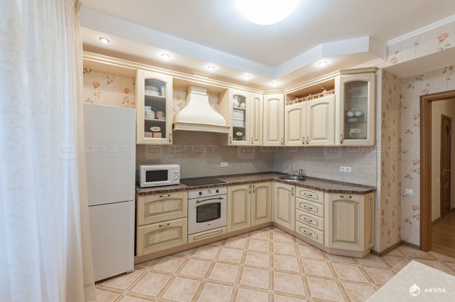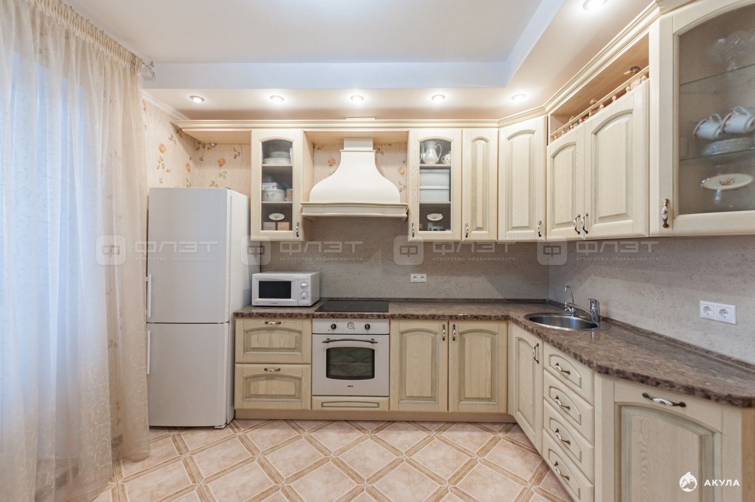 Кухня: остаётся качественный кухонный гарнитур (готово к проживанию).
