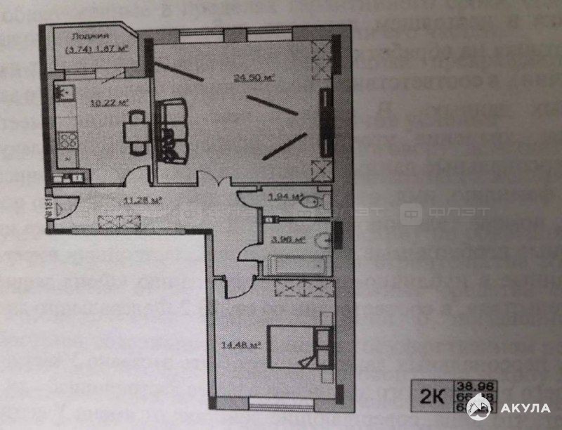Жилая площадь - 39, 0 кв.м;