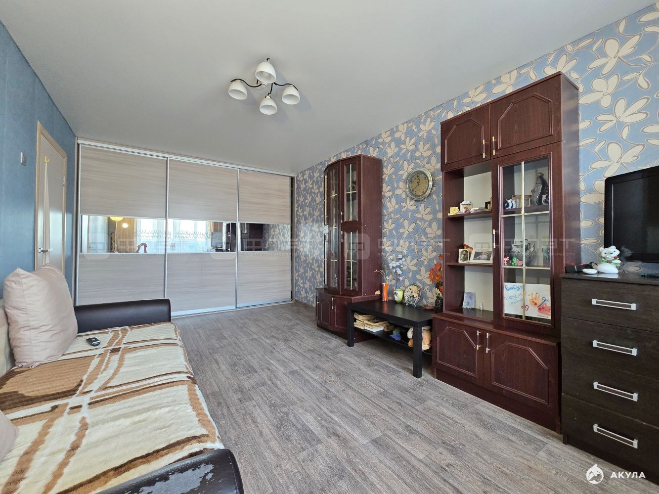 В квартире сделан хороший косметический ремонт. На полу качественный линолеум, хорошие межкомнатные двери, новые обои, пластиковые окна, натяжные потолки, надежная входная дверь.