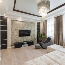 Объект №106404 Дизайнерский ремонт Центр Города Шикарная локацияВыставлена шикарная квартира в центре города.Отличный вариант для тех, кто любит комфорт. Дом кирпичный 2009 года постройки. Дизайнерский ремонт. Кухня "Swarovski AG" В зале и кухонной зоне люстры из Муранского...