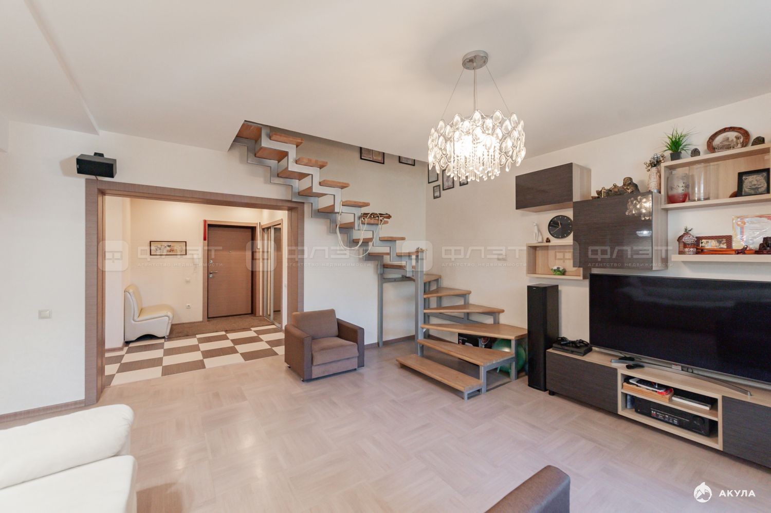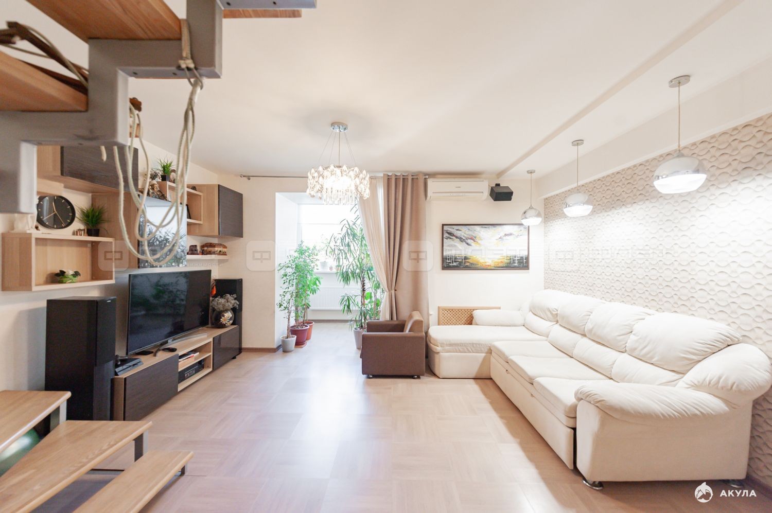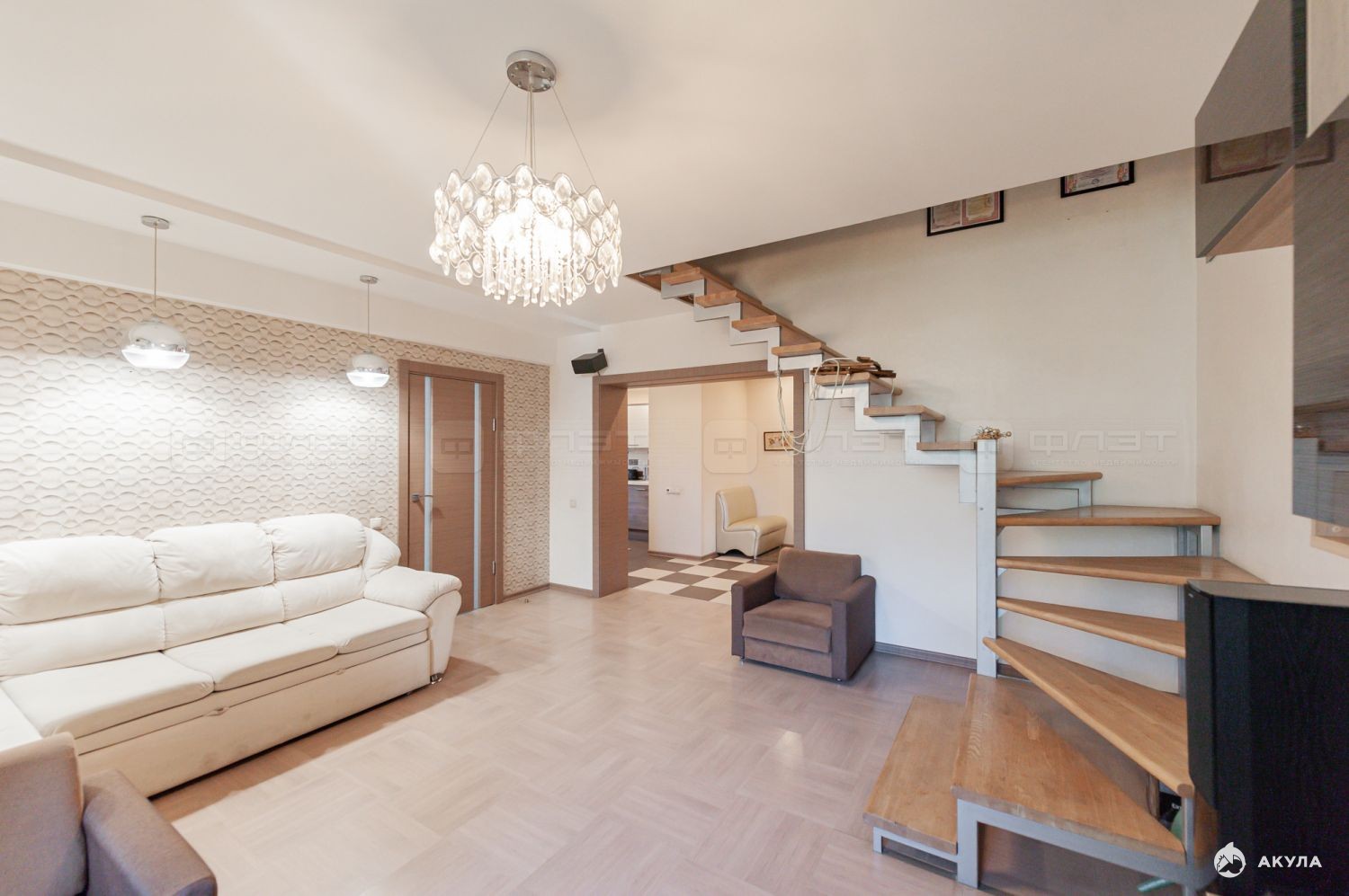 Объект №115636 Двухуровневая большая квартира Продается просторная пятикомнатная двухуровневая квартира ! Идеальный вариант для большой семьи.Эта квартира была спроектирована и заложена на стадии строительства дома.В квартире сделан дизайнерский ремонт , каждая деталь продумана и выполнена с любовью!Квартира очень теплая, светлая, солнечная , с восхитительными видами на природу ! В квартире есть все для комфортного проживания! На 1 этаже :