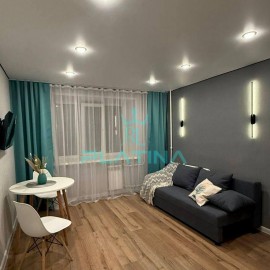 Объект №111648 Студия с двумя окнамиУютная студия с двумя окнами, теплый балкон.Видовая, открывается прекрасный вид на город. Охраняемая закрытая территория. Доступ в дом по отпечатку пальца либо по коду. Остается вся мебель(шкаф, кухонный гарнитур и диван, стиральная машина,...