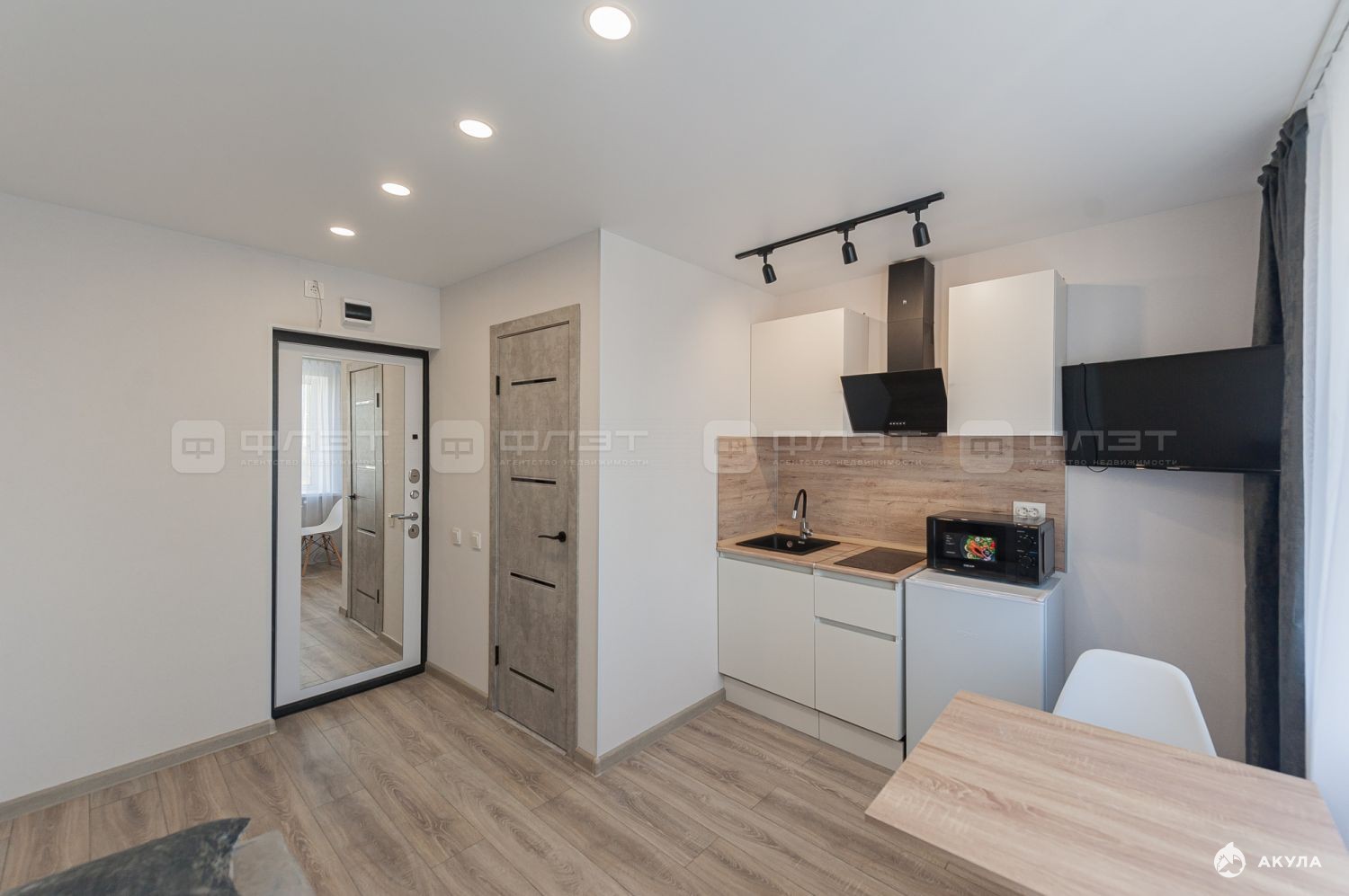 Объект №103574 Уютная студия в центральной части города Продается солнечная студия общей площадью 13.1 квадратных метров в центральной части города Казани по улице Карбышева. Квартира имеет правильную квадратную форму. Квартира расположена на шестом этаже кирпичного дома, в квартире очень светло и тихо, из-за большого оконного проёма. Соседи очень отзывчивые и порядочные, с ними легко поддерживать хорошие добрососедские отношения. Во дворе находится детская площадка и зелёные насаждения. В студии произведён новый ремонт из высококачественных строительных материалов и элементов декора. Для комфортного проживания новых владельцев, санузел совместили с душевой кабиной, установили полный пакет новой сантехники, пол и стены выложили плиткой. Стиральную машину поместили под раковину. В комнате полностью поменяли электропроводку. С учётом особенностей жилого помещения был разработан и воплощён в реальность индивидуальный дизайнерский проект в бело-серой цветовой гамме, который позволил максимально-рационально использовать каждый сантиметр свободного пространства, используя принцип заезжай и живи! В студии есть всё, для уютного проживания! В абсолютной близости находится вся необходимая инфраструктура. Территориально дом находится на пересечении улиц Карбышева и Профессора Камая. Метро горки и проспект победы в пяти минутах от студии. В любую точку города, дорога занимает не больше 10 минут. Отличный вариант для студентов, т.к дорога до вузов занимает 5 минут на метро.
