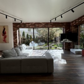 Фундамент • 5-метровые ЖБ-сваи 300х300 мм • ЖБ-ростверк, армированный Кровля • металлочерепица 0, 45 Grandline Classic • подшивка из металлических софитов • базальтовый утеплитель 100 мм • система снегозадержания • система водостока Docke (Дёке) Двери • 5-камерный профиль •...