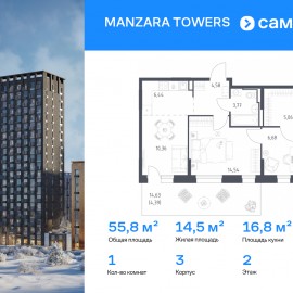Строим кварталы для жизни с заботой о будущем. Предлагается 1-комнатная квартира комфорт-класса 55, 82 кв.м в корпусе 3 на 2 этаже, в MANZARA TOWERS Квартира с предчистовой отделкой. Доступность дополнительных опций уточняйте у застройщика. Приобрести квартиру возможно по...