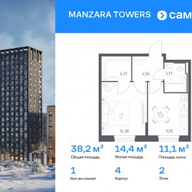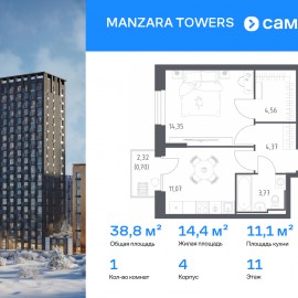 Строим кварталы для жизни с заботой о будущем. Предлагается 1-комнатная квартира комфорт-класса 38, 82 кв.м в корпусе 4 на 11 этаже, в MANZARA TOWERS Квартира с предчистовой отделкой. Доступность дополнительных опций уточняйте у застройщика. Приобрести квартиру возможно по...