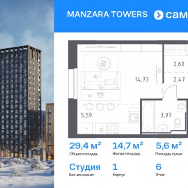 Строим кварталы для жизни с заботой о будущем. Предлагается квартира студия комфорт-класса 29, 36 кв.м в корпусе 1 на 6 этаже, в MANZARA TOWERS Квартира с предчистовой отделкой. Доступность дополнительных опций уточняйте у застройщика. Приобрести квартиру возможно по специальным...