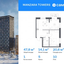 Строим кварталы для жизни с заботой о будущем. Предлагается 1-комнатная квартира комфорт-класса 46, 42 кв.м в корпусе 2 на 20 этаже, в MANZARA TOWERS Квартира с предчистовой отделкой. Доступность дополнительных опций уточняйте у застройщика. Приобрести квартиру возможно по...