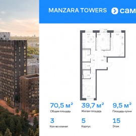 Строим кварталы для жизни с заботой о будущем. Предлагается 3-комнатная квартира комфорт-класса 70, 47 кв.м в корпусе 5 на 15 этаже, в MANZARA TOWERS Квартира с черновой отделкой. Доступность опции «отделка» и возможность комплектации мебелью и декором уточняйте у...