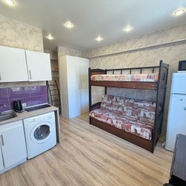 Объект №116869 Готовьте, спите, работайте-всё в одном пространствеЭта студия — ваш выигрыш во времени. Новый ремонт, мебель и техника уже на месте: кухня с необходимой техникой, удобный рабочий уголок, качественное спальное место, системы хранения для всего...
