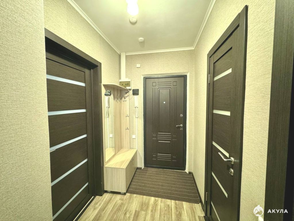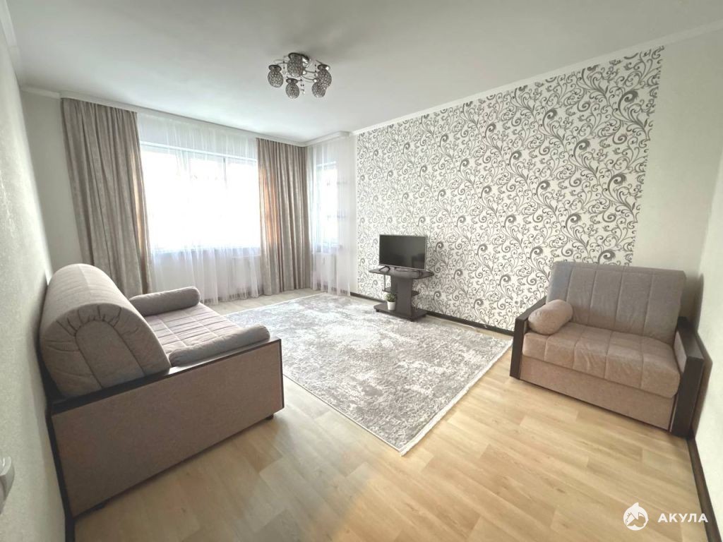 Квартира с отличным ремонтом, первая сдача. В комнате удобная гардеробная. Просторная гостиная вмещает раскладное кресло для отдыха, раскладной диван, ТВ.