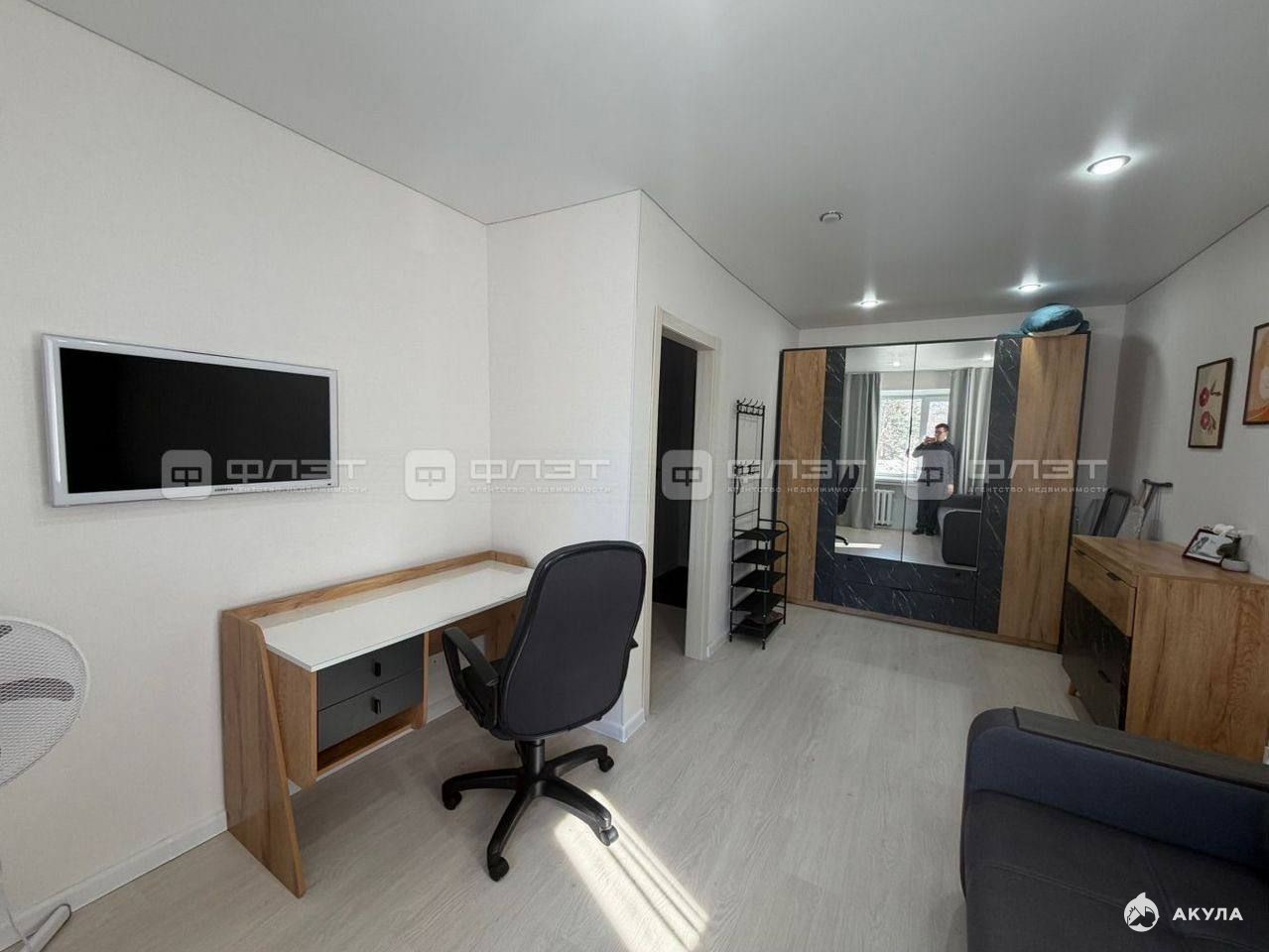 В квартире сделан современный ремонт. Полы: ламинат. Окна: пластиковые. Потолки: натяжные. Сан. узел в кафеле.