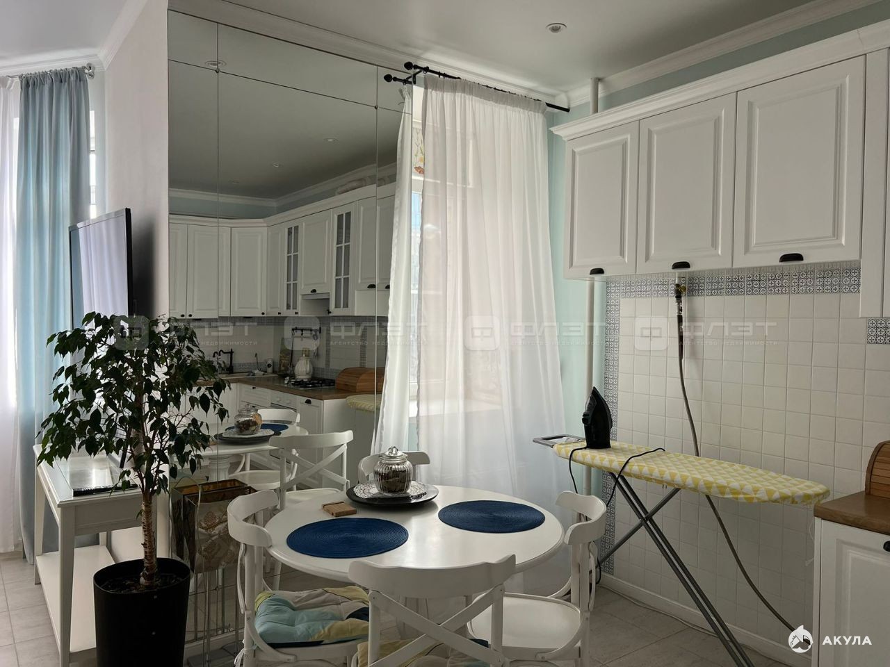 В квартире сделан современный ремонт. Окна: пластиковые. Потолки: натяжные. Сан. узел в кафеле.