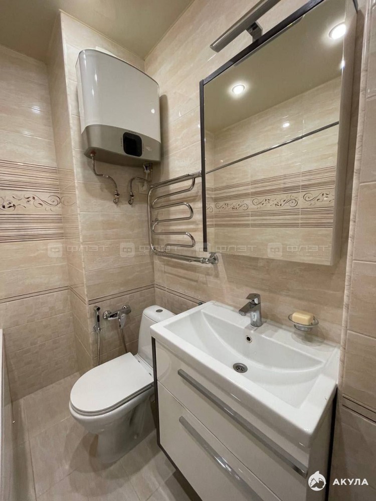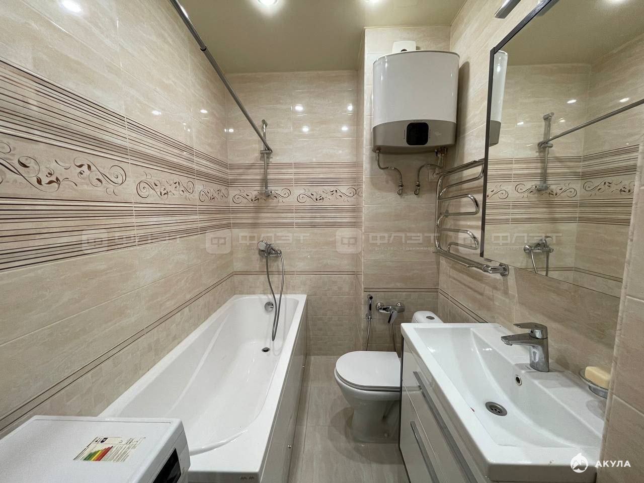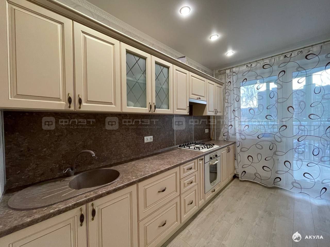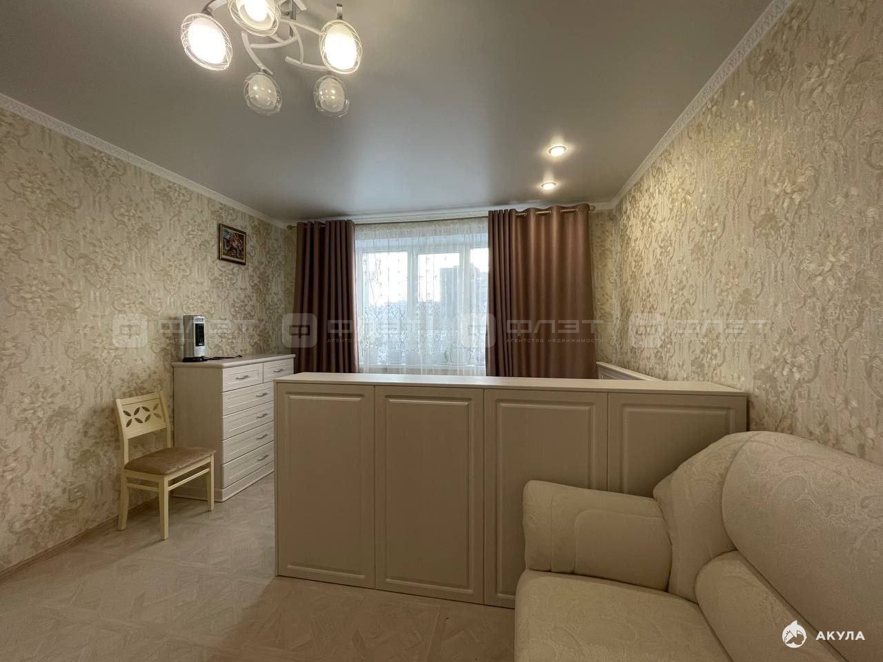 В квартире сделан качественный ремонт. Полы: ламинат. Окна: пластиковые. Потолки: натяжные. Сан. узел в кафеле. Есть балкон.