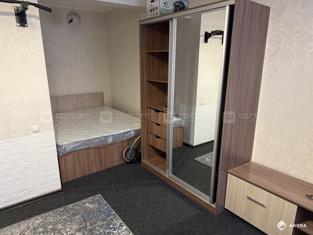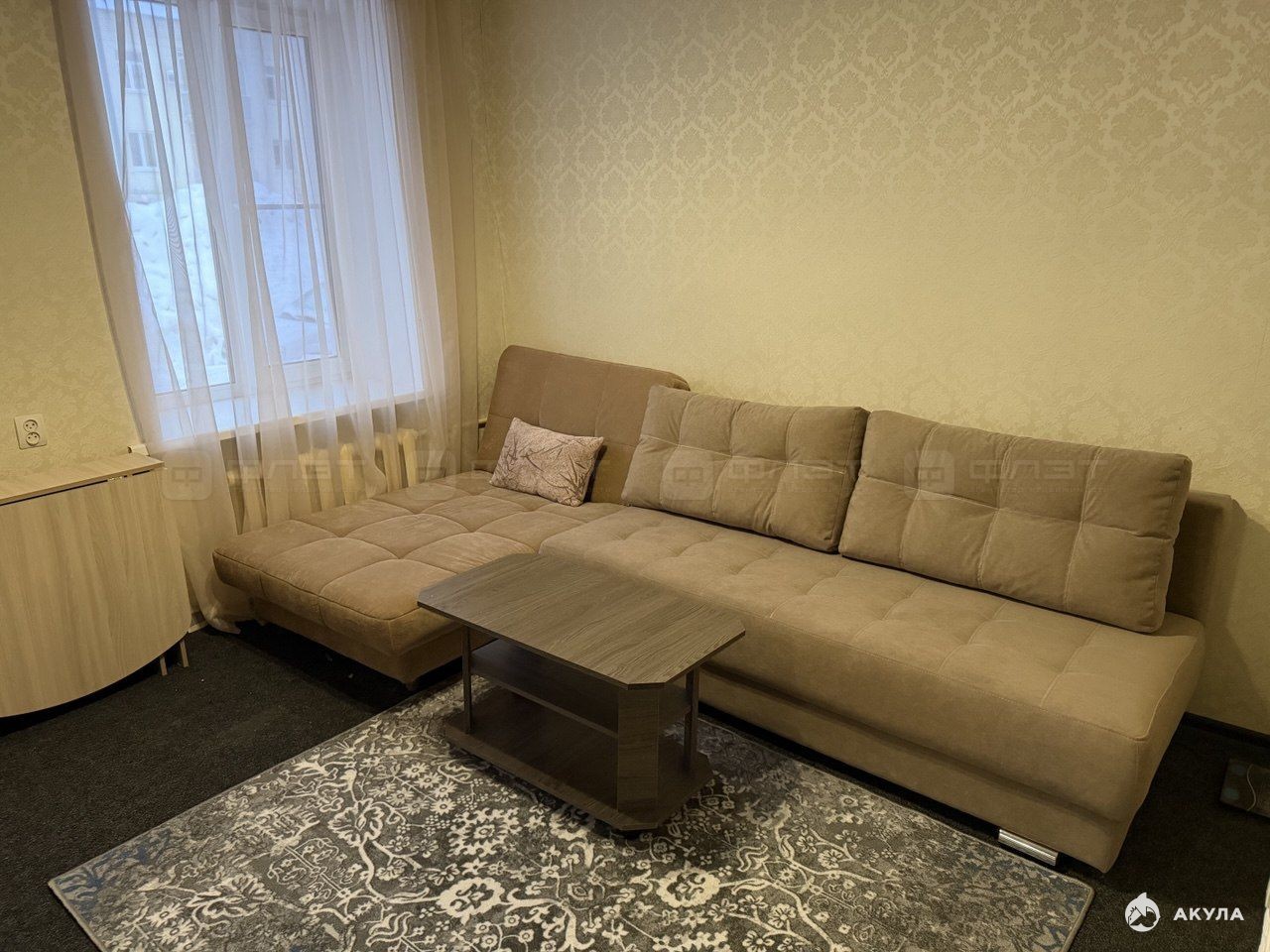 В квартире сделан свежий ремонт. Полы: линолеум, ковролин. Окна: пластиковые. Потолки: натяжные. Сан. узел в кафеле.
