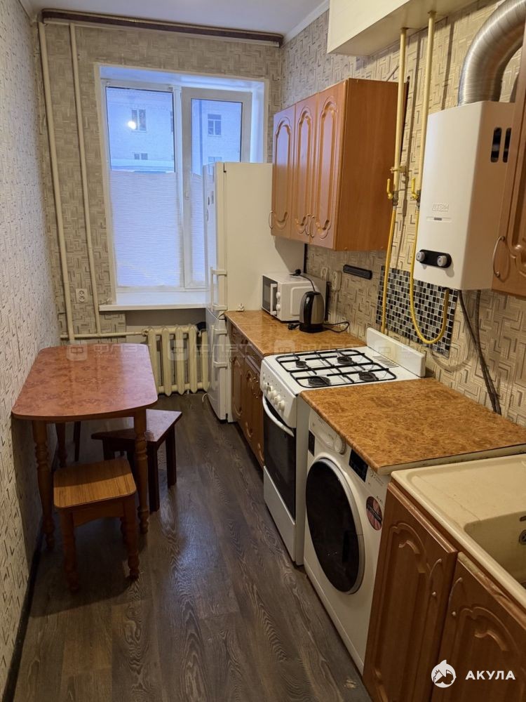 Жильцам предоставляется из мебели и технике: кухонный гарнитур, диван раскладной, кровать, шкаф-купе, cтол, стулья, холодильник, плита, духовка, микроволновая печь, стиральная машина, телевизор.