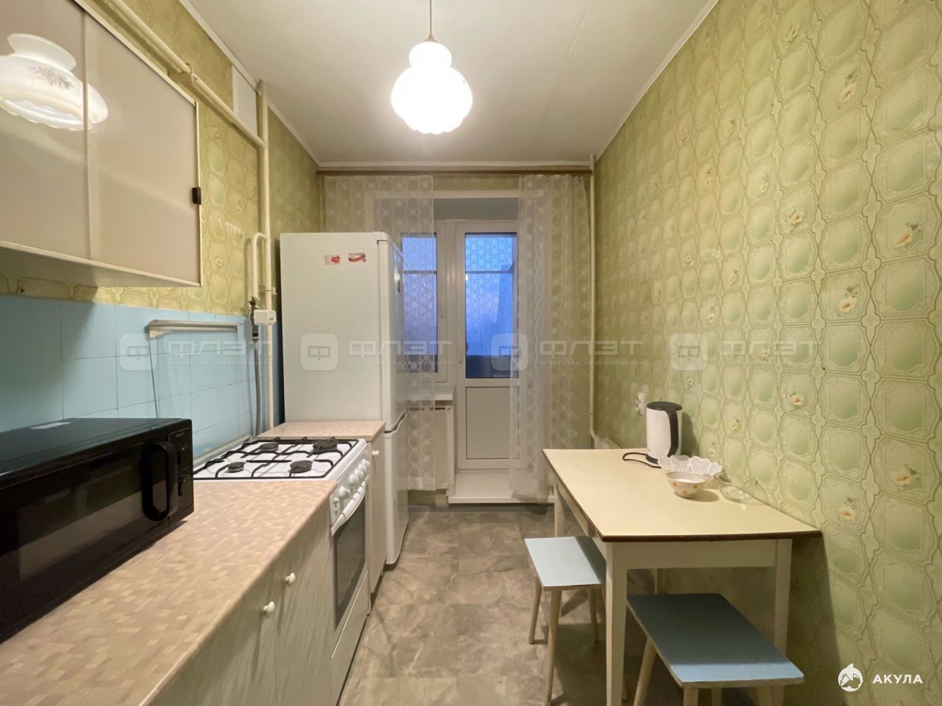 Жильцам предоставляется из мебели: кухонный гарнитур, диван, шкаф, шкаф-купе, cтол, стулья. Из техники: холодильник, плита, стиральная машина, телевизор, кондиционер. Полы: линолеум. Окна: пластиковые. Сан. узел в кафеле.
