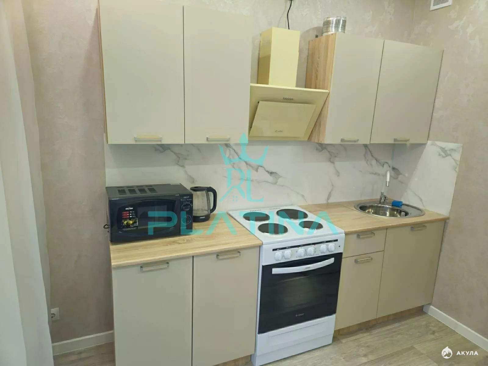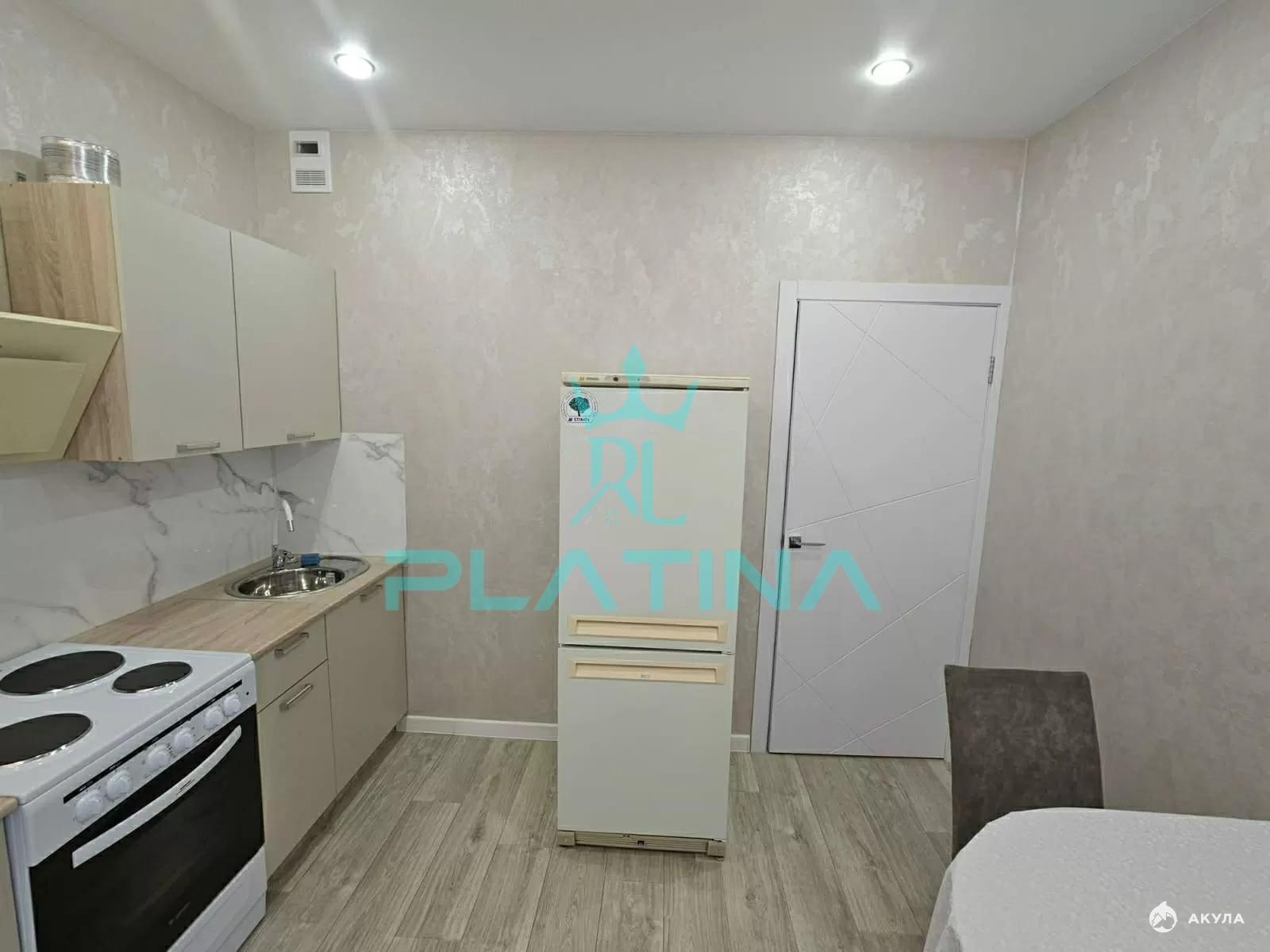 В квартире выполнен отличный ремонт, и она полностью укомплектована всей необходимой мебелью и техникой для комфортного проживания. В спальной зоне расположены диван и шкаф. Кухня оборудована холодильником, плитой и микроволновой печью.