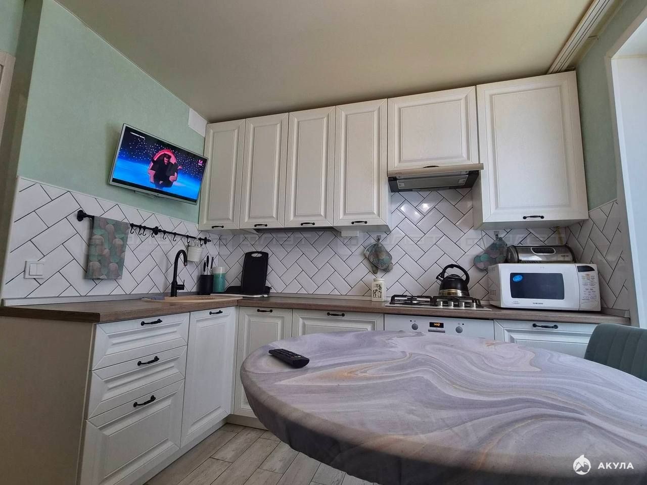 Жильцам предоставляется из мебели: кухонный гарнитур, диван, кровать с матрасом от аскона сертапремиум, шкаф-купе, cтол, стулья. Из техники: холодильник, плита, вся необходимая посуда, микроволновая печь, духовка, стиральная машина, телевизор.