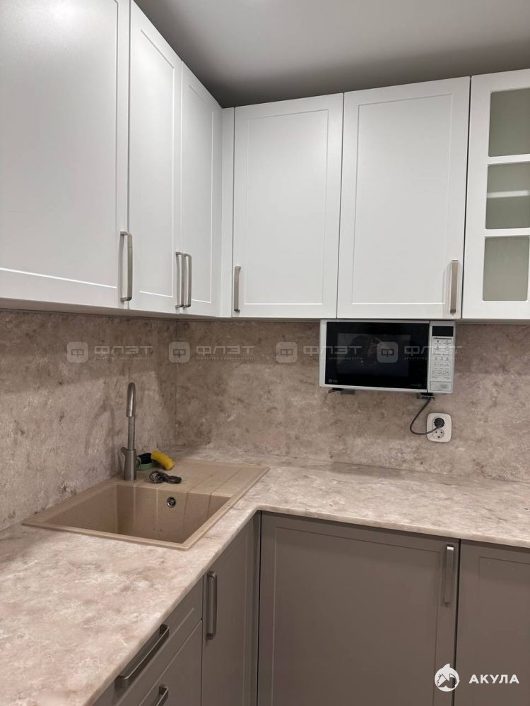 Жильцам предоставляется из мебели: кухонный гарнитур, кровать, шкаф, cтолы, стулья. Из техники: холодильник, варочная панель, микроволновая печь, духовка, чайник, стиральная машина, кондиционер.