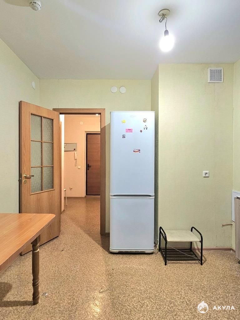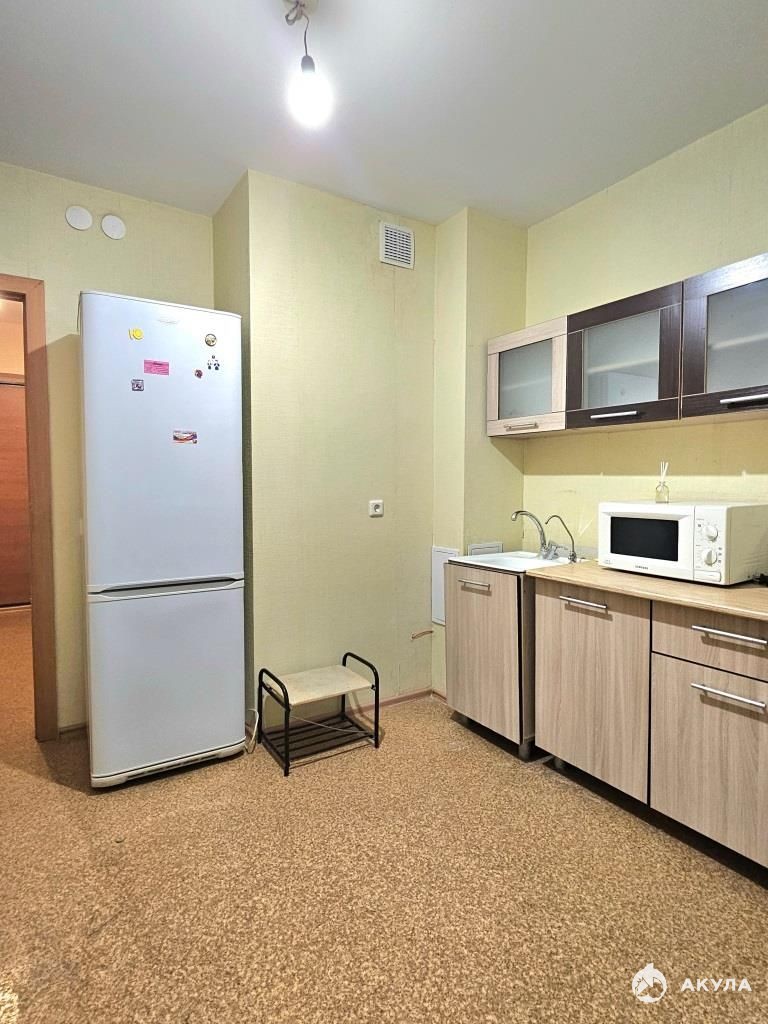 В квартире есть все необходимое для проживания : диван, шкаф, кухонный гарнитур, стол, холодильник, стиральная машина.